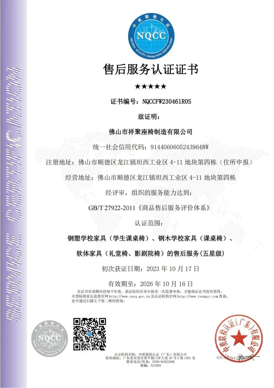 最近,祥聚公司獲得瞭中質聯檢認證頒發的五星售後服務證書,這是對祥聚優秀售後服務的高度認可。這一認證證實瞭祥聚在售後支持方面的卓越表現,爲客戶提供瞭可靠的支持和解決方案。祥聚科創不僅将社會責任融入企業文化,還以持續改進優質售後服務爲使命,爲客戶和社區的滿意度提供瞭有力的保障。