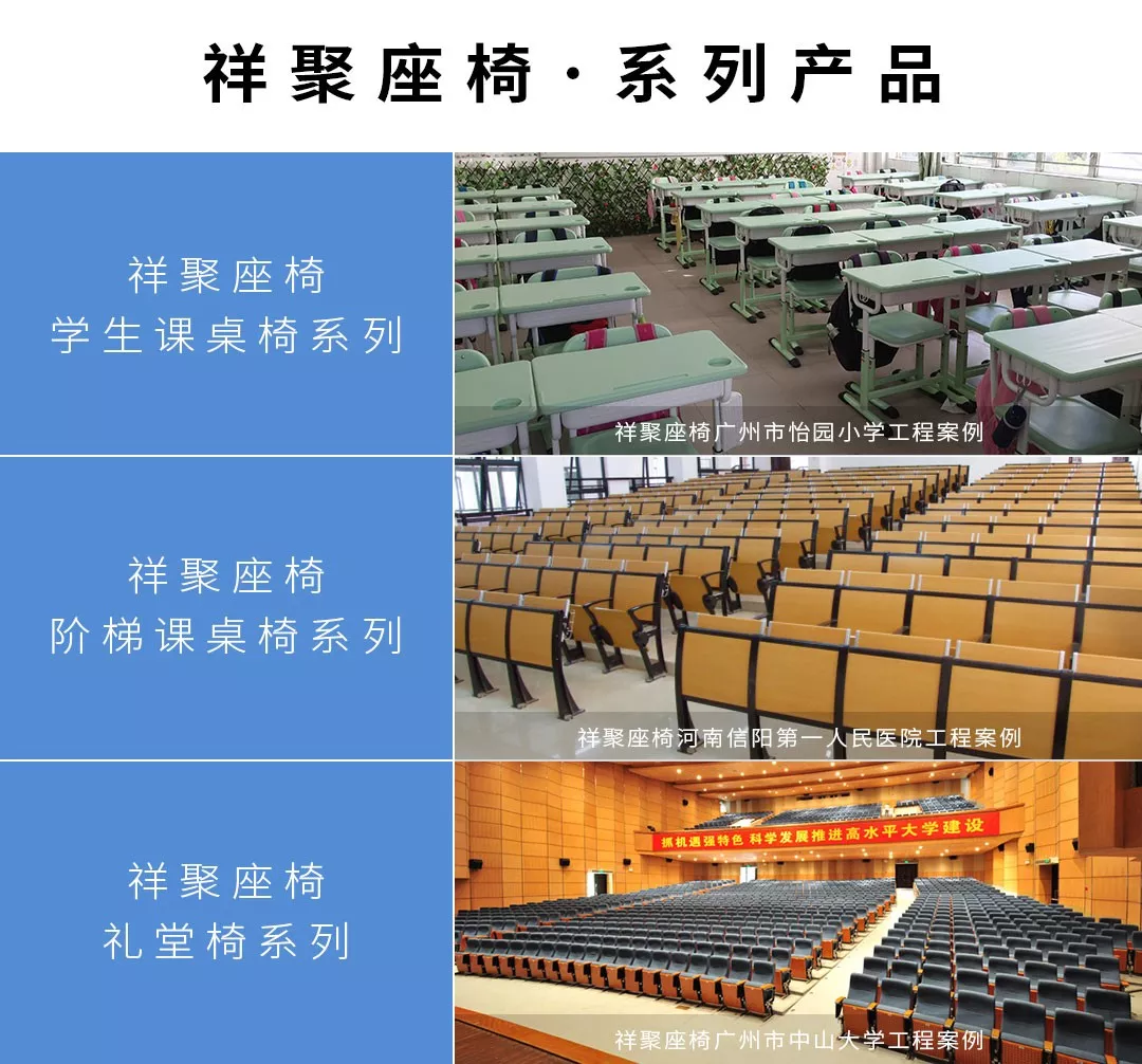 一、目前,從安全、标準、智能化等多方面的市場(chǎng)需求下,我司已經成功研發、設計、生産(chǎn)出革命性的禮堂椅、學生課桌椅等一系列産(chǎn)品。歡迎各位客戶與我們的專業銷售人員線上交流以及咨詢,我們的同事将以最專業的知識和服務接待。