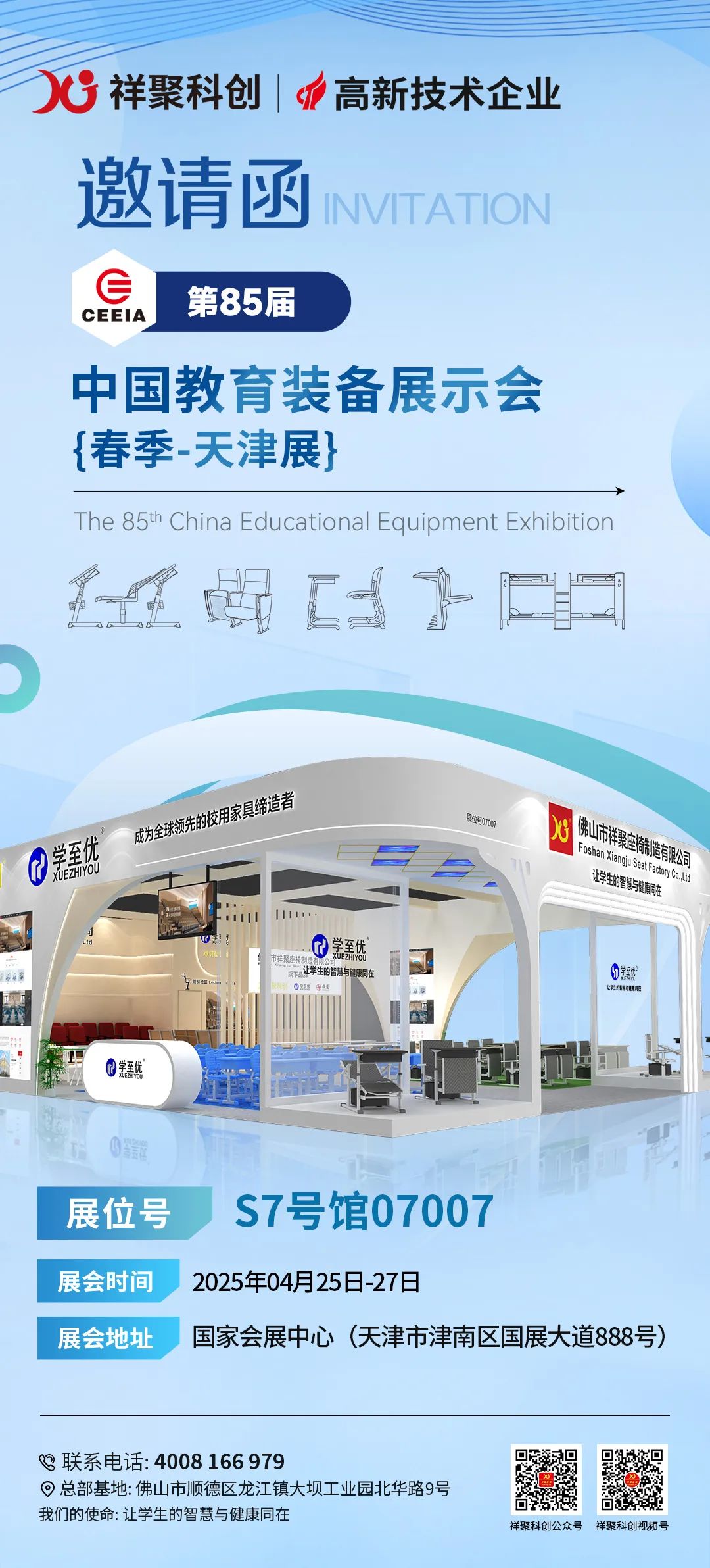 4月25日, 爲期3天的由中國教育裝備(bèi)行業協會主辦(bàn)的「第79屆中國教育裝備(bèi)展示會」已圓滿落幕。祥聚座椅以“健康校園·守護...