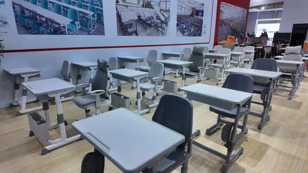 作爲展會的亮點企業之一,祥聚科創此次攜多款創新産品重磅登場,不僅帶來瞭(le)備(bèi)受矚目的午休課桌椅系列,更有其他優秀産品集體亮相,展現出企業在教育裝備(bèi)領域的深厚積澱和創新實力。