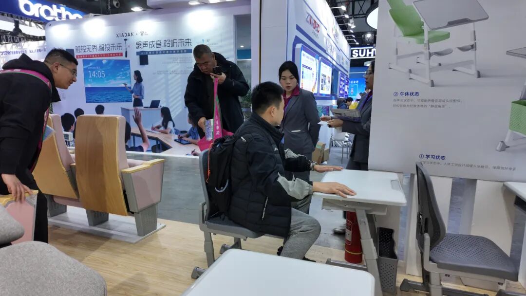 祥聚科創午休課桌椅新品憑借符合最新國(guó)标、材質環(huán)保耐用、設計人性化等優勢,精準解決市場痛點,爲學校和教育機構提供高效、創新的午休解決方案。一經展出,便成爲現場關注的焦點。