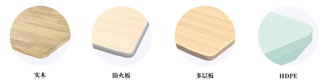 桌面闆較常採(cǎi)用環保HDPE或實木爲原料,安全環保,經中空吹塑工藝制作而成,桌面堅固耐磨,圓弧轉角,整體美觀(guān)整潔。