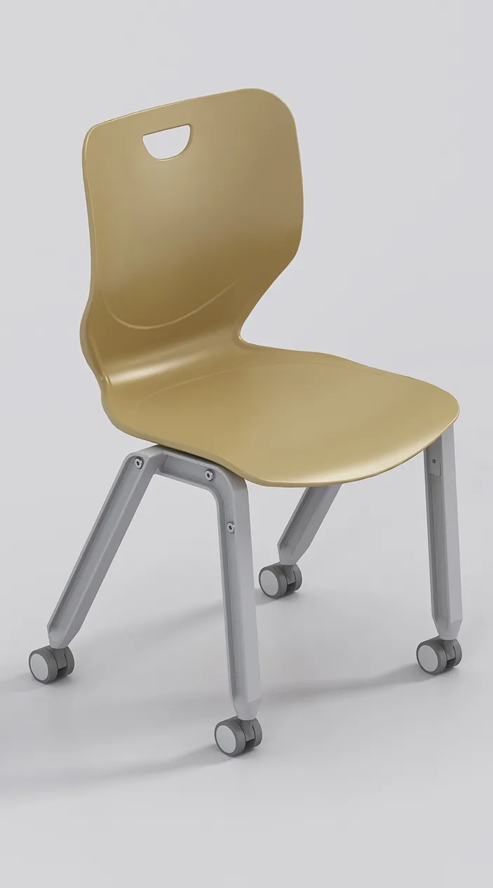 一體成型,中間厚兩邊(biān)薄的pp材質椅面,安全環(huán)保,柔韌性強。