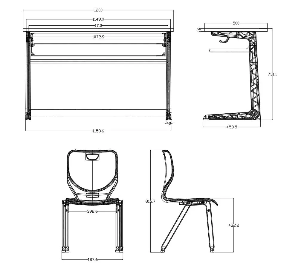 桌椅腳掌設計4個平衡調(diào)節機構,PP塑料穩定防滑,防沖(chōng)撞耐磨損,防止與地面過度摩擦。