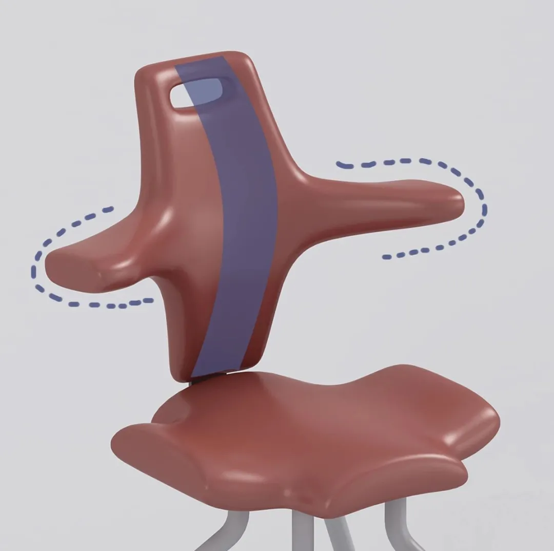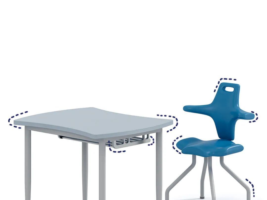高度彎曲的靠背可提供最佳的靠背支撐,結合學生“豐富的肢體動作”,十字形靠背可最大程度地移動手臂,側(cè)面坐著(zhe)時,十字靠背是舒适的扶手,滿足學生的坐感需求