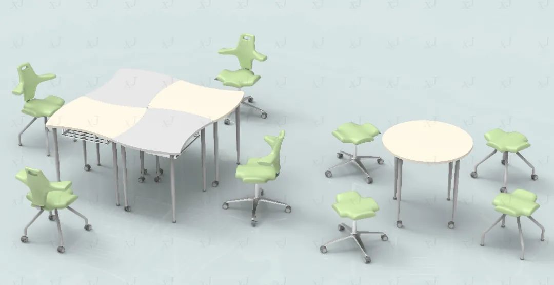 讨論式學習,是開放的,是可以發散地展開分析,有助於學生更深入地去讨論、解決和分享問題和想法,提升課堂氛圍,更大程度的帶來創造力,於是我們需要這樣的課桌椅