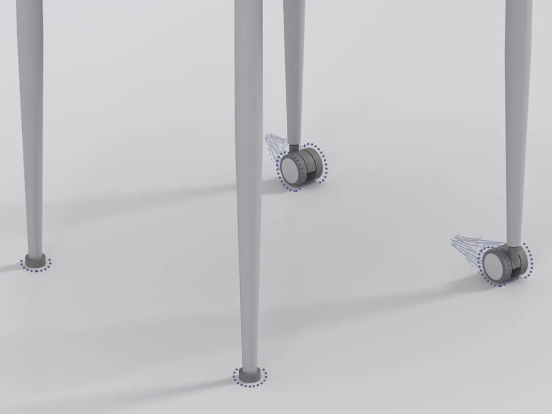 四邊(biān)輪腳設計,給座椅提供穩固支撐(chēng),輕松移動位置,告别傳統搬運方式。