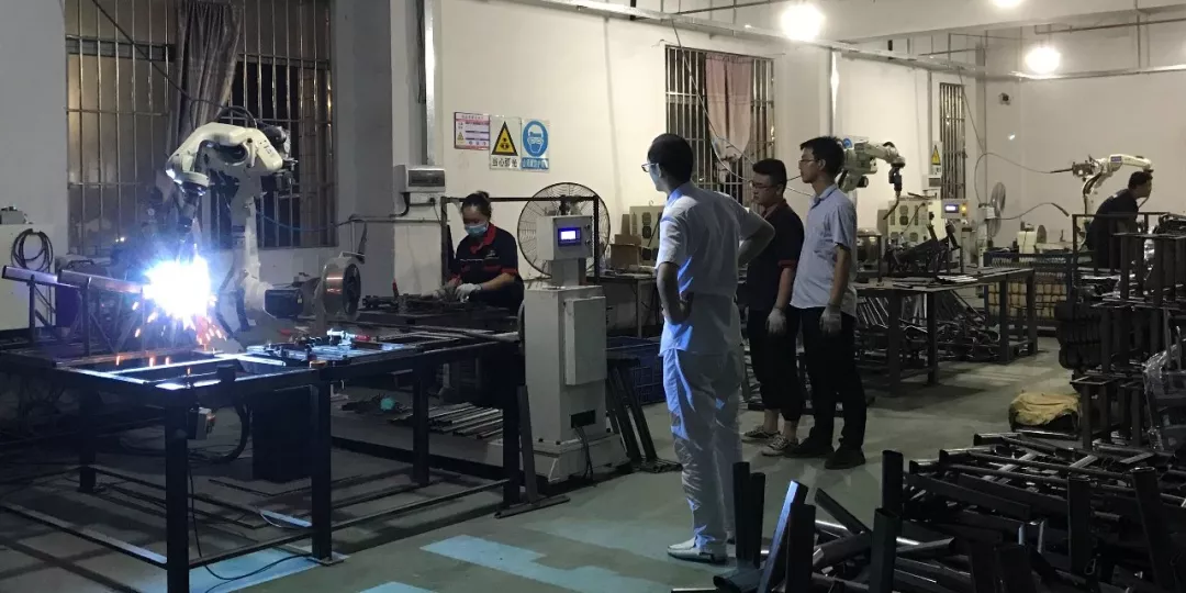雖然天氣炎熱,夜晚的工廠車間内仍是一派繁忙的景象,伴随3台大型機械手臂的呲呲聲,工人們都在自己的崗位上辛勤