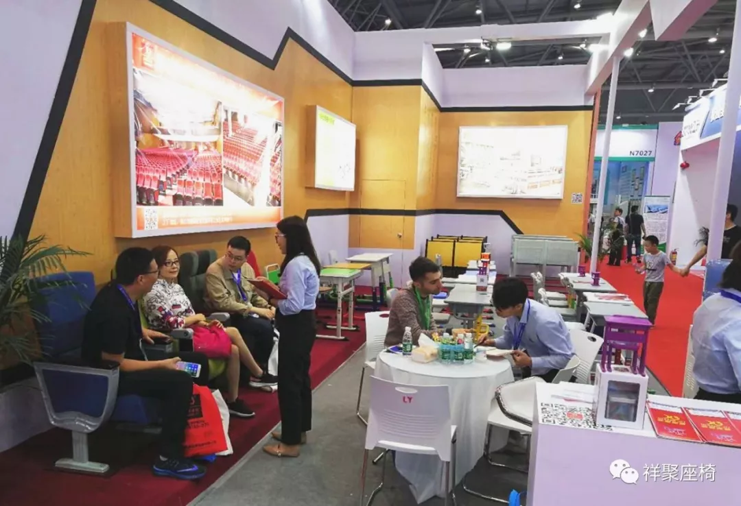 此次精彩的教育裝備(bèi)展示會,作爲教育系統産品一站式解決方案服務商,怎麽能少得瞭(le)祥聚座椅的身影。