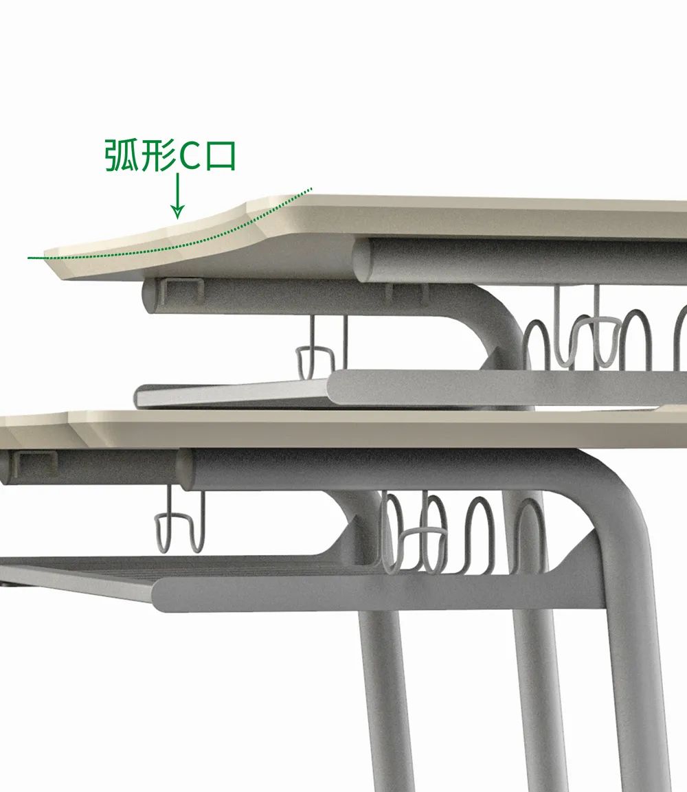 桌面縱深3cm小C口,雙前臂自然垂落於(yú)托肘闆,身體重心前移,脊柱承壓小,有助學生保持良好的讀(dú)寫姿勢。