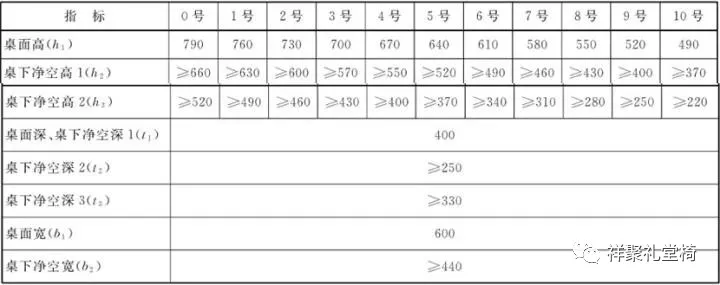 課(kè)桌與課(kè)椅同号搭配,不得混用。個(gè)别情況下,相鄰兩個(gè)型号大桌與小椅相匹配。