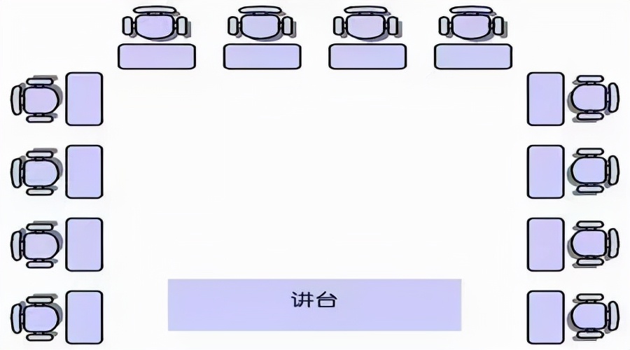 馬(mǎ)蹄式座位模式又叫作U型座位模式,是指教師站在U型入口處(chù),學生面朝教師而坐。