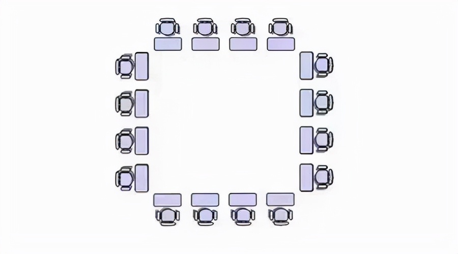 這種模式類似於文章開頭提到的“團團坐”,與秧田式不同,改變瞭(le)學生看著(zhe)學生的後背的方式,面對面圍桌而坐,在相互交流中完成教學任務。