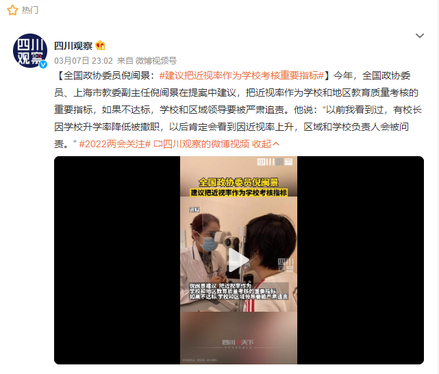 每年全國兩會期間,青少年近視問題均備(bèi)受熱議,人大代表、全國政協委員紛(fēn)紛(fēn)獻策。
