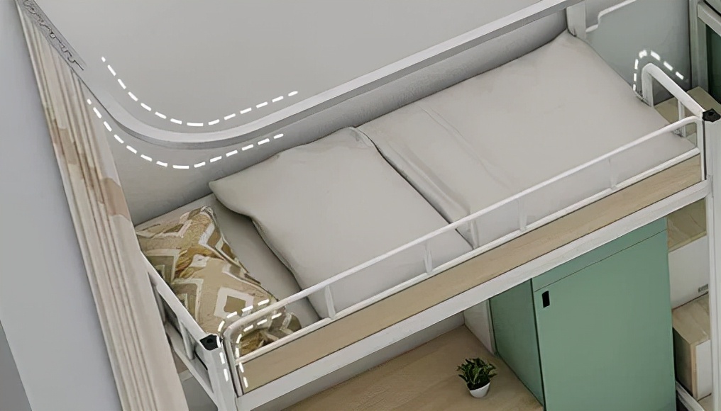 無棱角圓弧面設計,充分考慮到學生的安全,避免他們因磕碰而受到傷害。半弧形床簾蚊帳框架,在提供安全性格擋(dǎng)的同時,同時也爲學生營造瞭(le)半私密的休息空間。主體的拼接結構設計,方便學校進行個性定制,打造專屬學校品牌的室内空間。