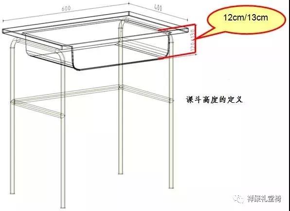桌下淨空偏小,将限制學生下肢的活動,對其生長發育造成不利影響。《标準》中課鬥的高度要求爲不大於(yú)12~13cm。(0至3号爲13cm,4~10号爲12cm),桌側(cè)方設挂鈎時,鈎端不超出桌側(cè)緣之外。