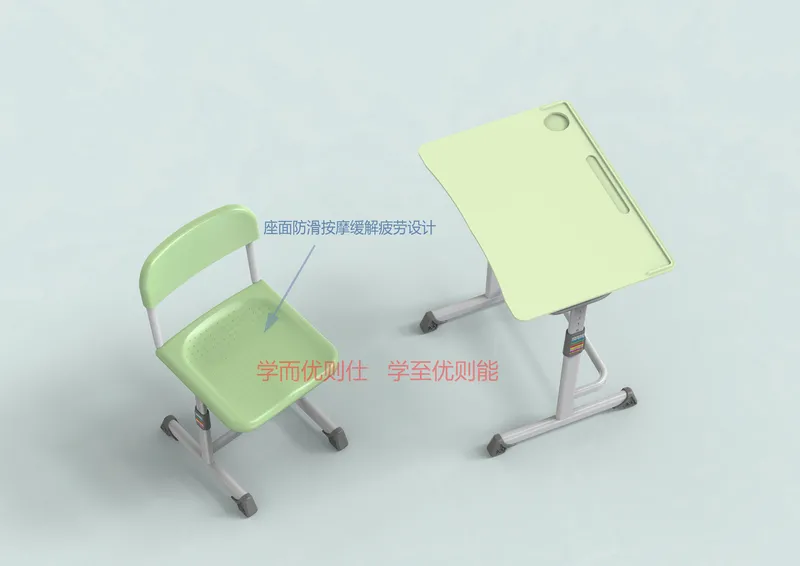 (祥聚座椅根據國家标準設計瞭(le)四大類符合不同身高層(céng)學生的課桌椅搭配)