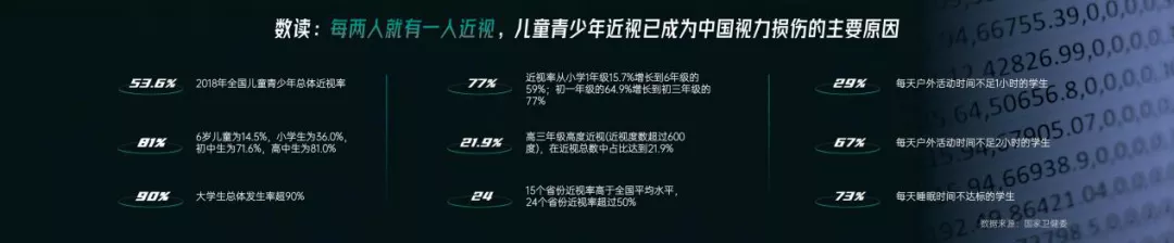 2018年全國兒童青少年總體近視率爲53.6%,相當於(yú)每兩人就有一人近視,據《2020中國青少年近視防控大數據報告》統計顯示,今年新冠肺炎疫情防控期間,與2019年底相比,半年來學生近視率增加瞭(le)11.7%,其中小學生近視率增加瞭(le)15.2%、初中生近視率增加瞭(le)8.2%,高中生近視率增加瞭(le)3.8%。
