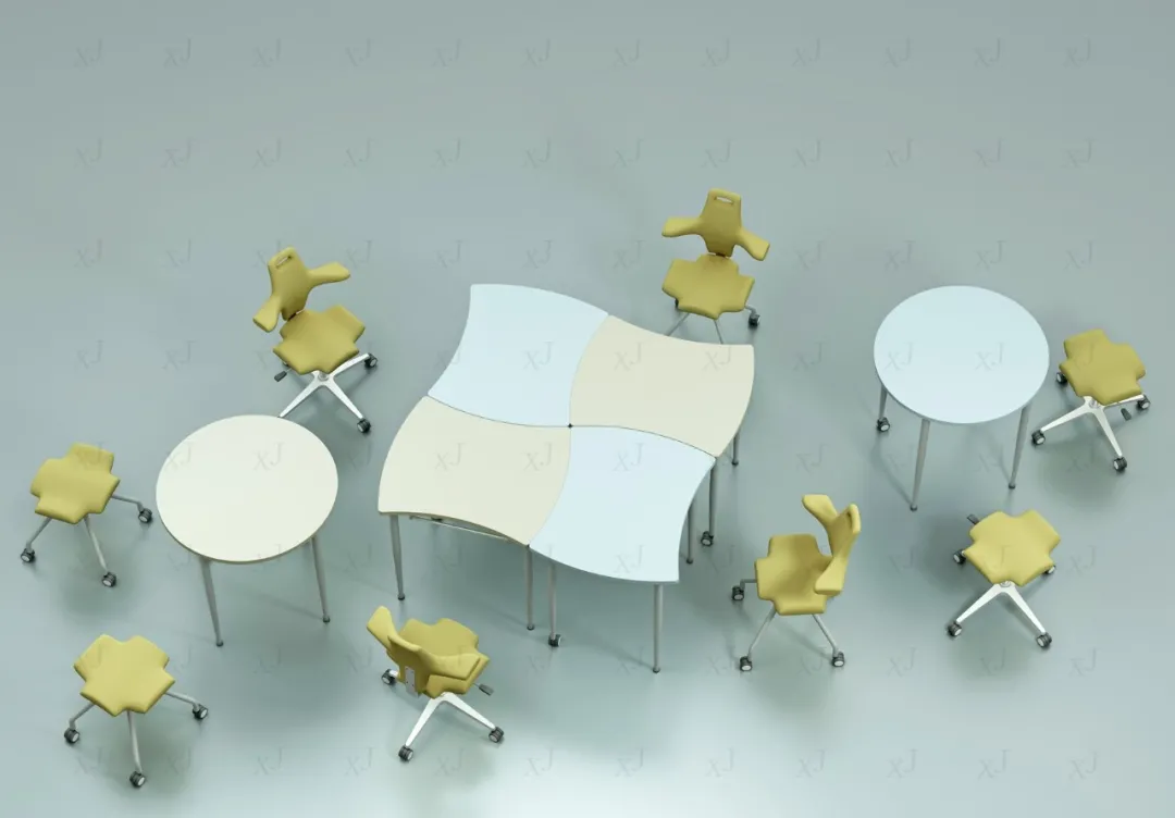 “項目合作型”智慧教室採(cǎi)用可自由組合的天王星和海王星系列書寫桌,可以實現多人數的分組,支持講授、TBL(小組合作學習)、PBL(項目式學習)等多種教學場(chǎng)景的快速轉換,可以根據教學需要靈活轉換爲大組學習模式、小組研讨模式和不同人數成組。