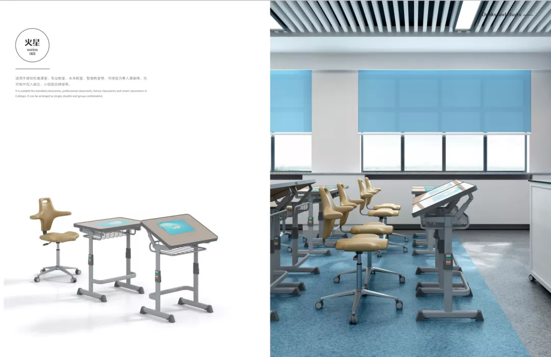 組合型課桌椅設計以人爲本,符合人體工程學要求,選擇可升降課桌,可矯正學生坐姿,預防學生近視,輔(fǔ)助學習過(guò)程,提高教學質量。