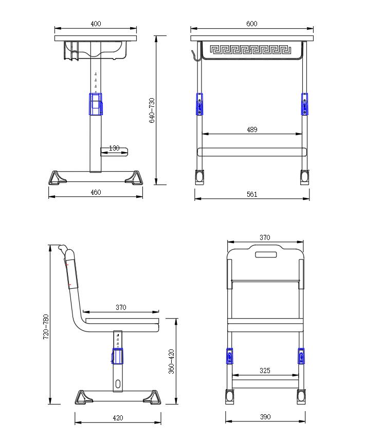 4.桌子及椅子管壁:1.2mm壁厚全旦形管、可升降;