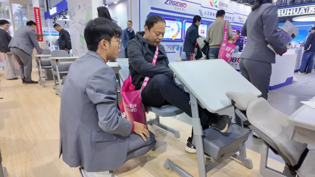 大家圍在展示區交流産品細節,拿著(zhe)宣傳冊認真瞭(le)解功能,時不時還會坐下來親身體驗産品舒适度,整個展位熱鬧又有序。