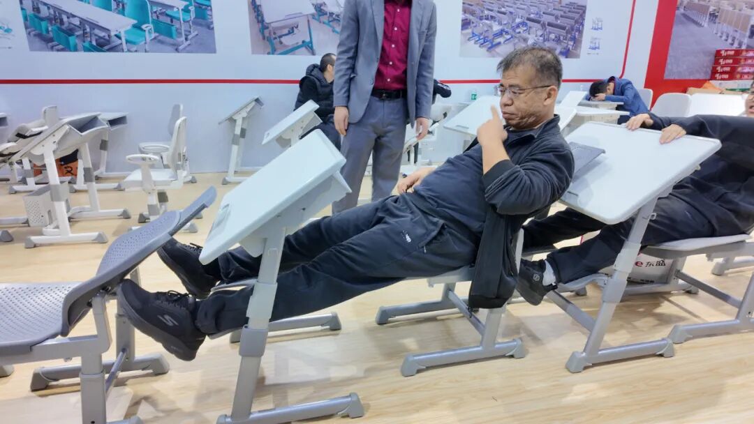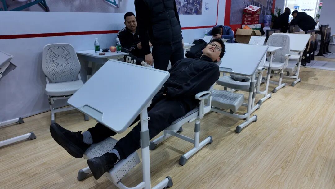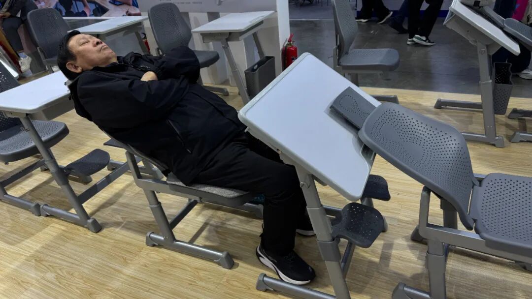 而在祥聚科創(chuàng)的衆多展示産(chǎn)品中,午休課桌椅無疑是最 “圈粉” 的存在。